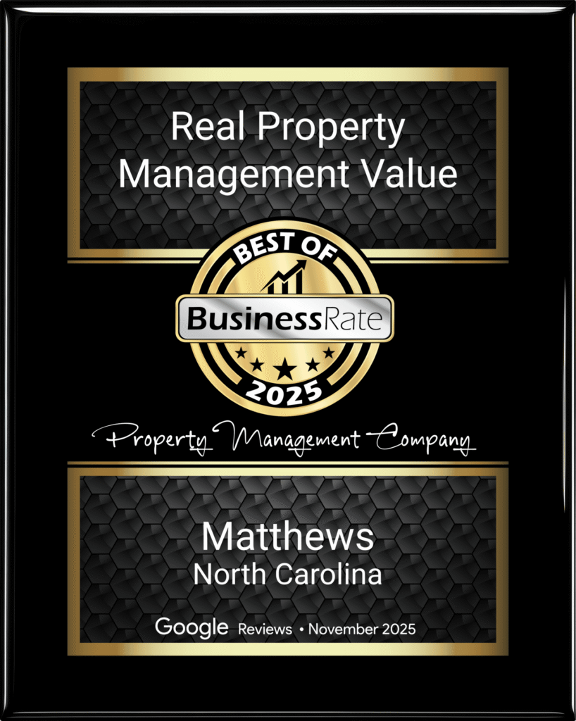 We are proud to share that our office has been recognized as a 2025 Best of BusinessRate Award Winner for Real Property Management Value in Matthews, North Carolina, based on verified Google reviews.